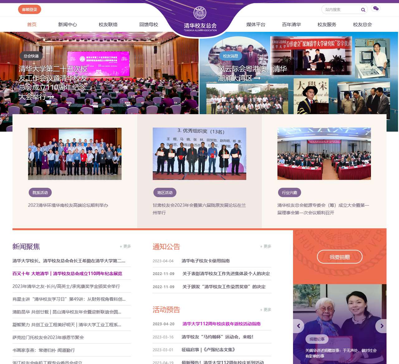 | 首页 | 清华校友总会欢迎您的访问,了解最新动态和校友活动。 |