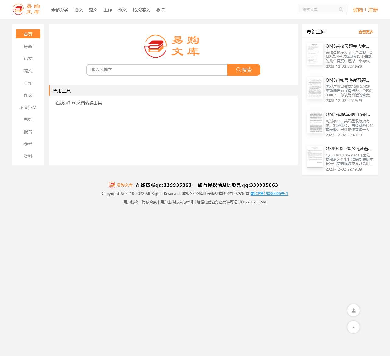 欢迎来到易购文库,您的在线文档分享平台。我们提供丰富多样的文献资源,涵盖了论文、范文、工作总结、报告、参考资料等各个领域,助您更轻松、高效地获取所需资料。以下是我们平台首页的主要内容: