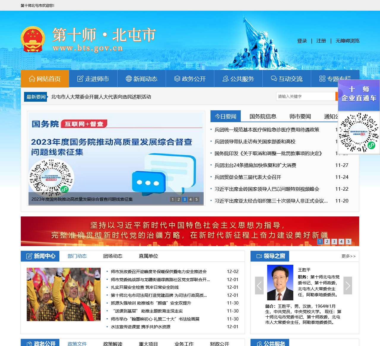 欢迎访问第十师北屯市政府网站!本站致力于为广大市民提供及时、准确、便捷的政务信息和服务。以下是网站首页内容的整理: