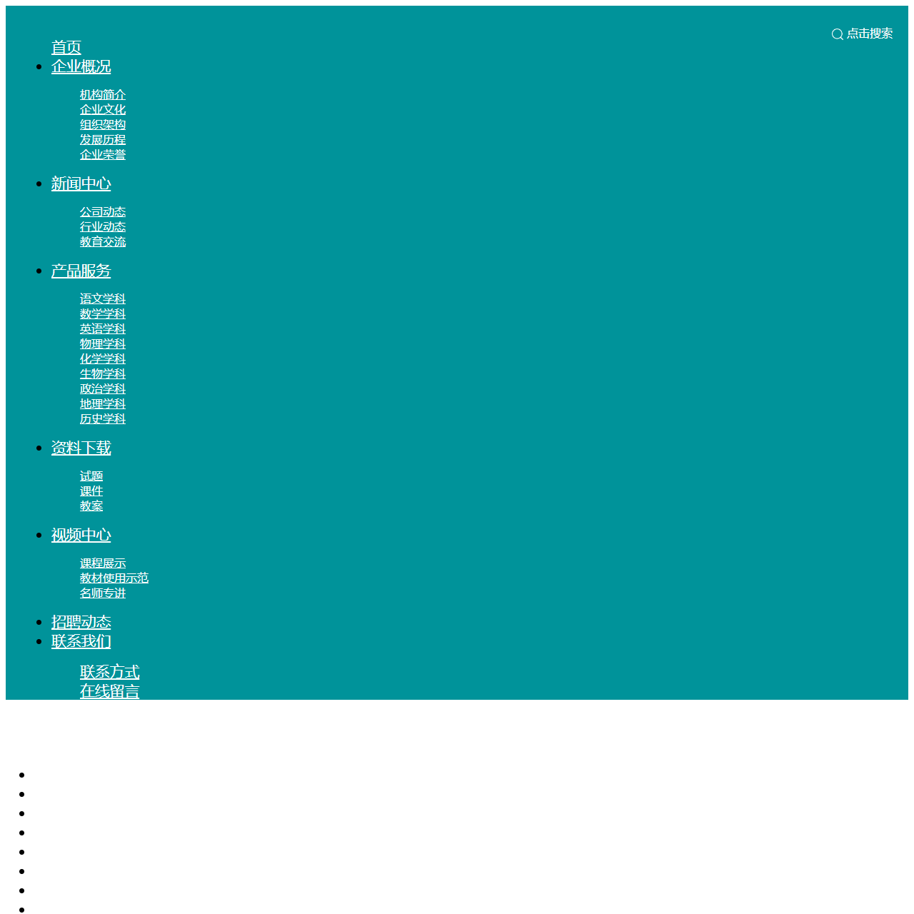 浏览公司的教育视频,包括课程展示、教材使用示范、名师专讲等内容。