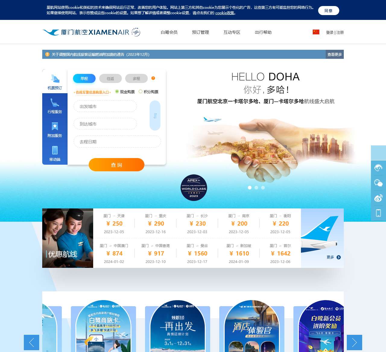 通过厦门航空官方网站,我们致力于为您提供更便捷、舒服的飞行服务。感谢您选择厦门航空,与我们一同畅游蓝天!
