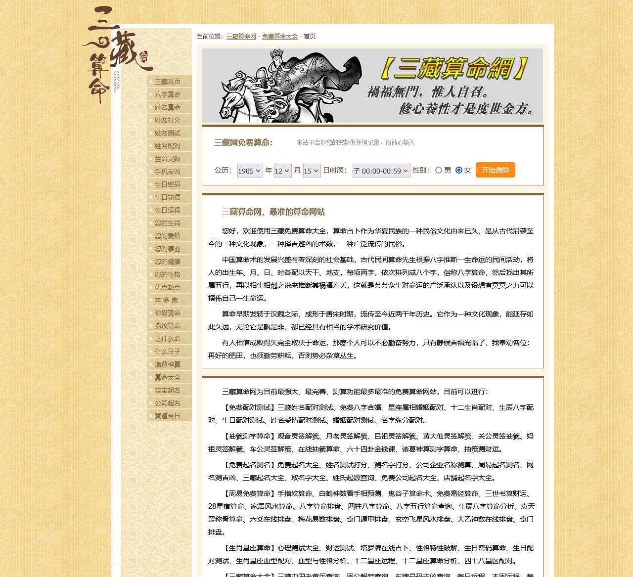 三藏算命网 – 免费在线算命