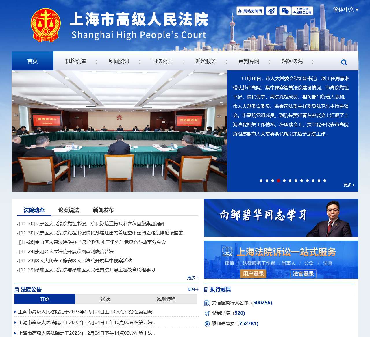上海市高级人民法院网站介绍