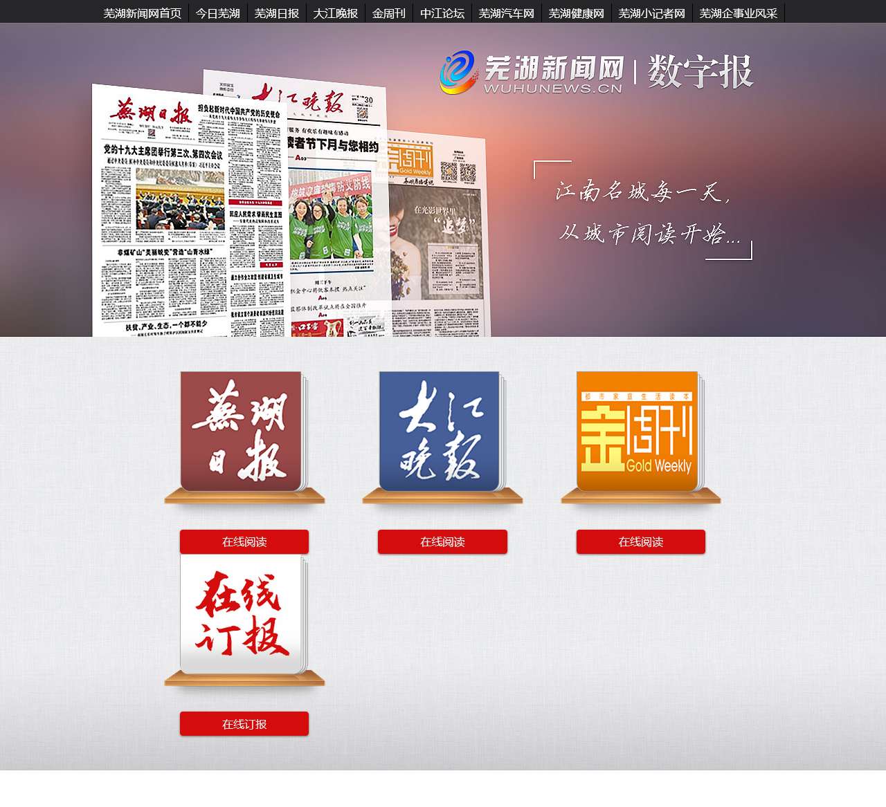 | 在线订报 | 在线订报服务方便用户通过网络快捷、便利地订阅芜湖日报,保持对本地新闻的及时关注。 |