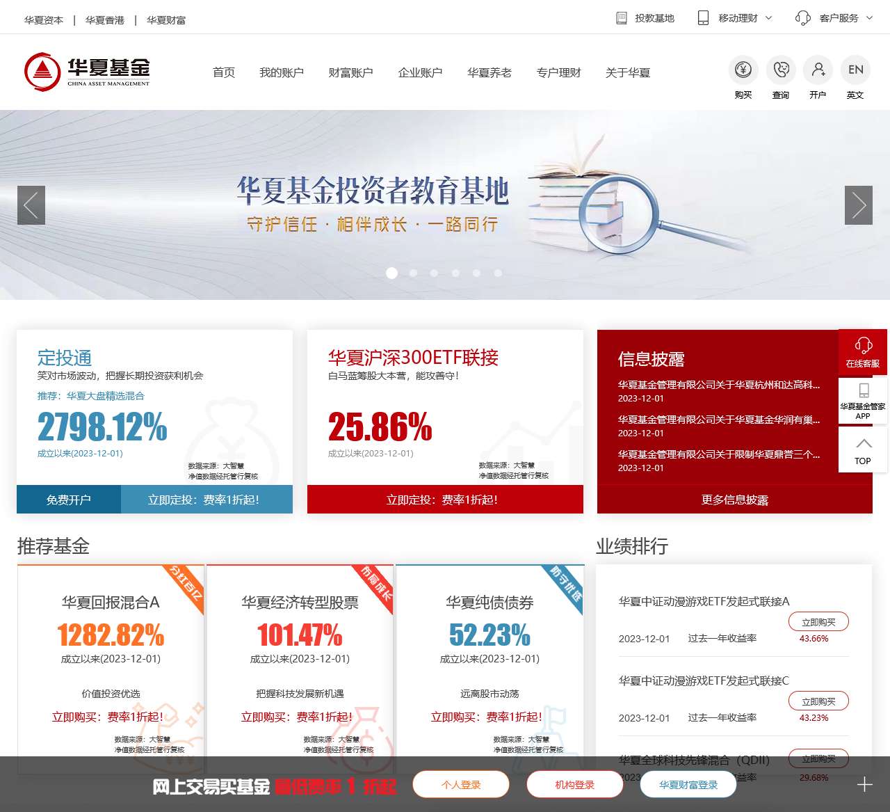 欢迎来到华夏基金,您财富增值的首选伙伴。在这里,我们提供多样化的基金产品,助您实现财务目标。通过我们的专业投资团队和创新产品,我们致力于为投资者提供可靠的投资选择。