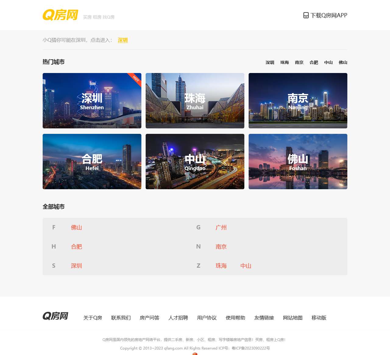 Q房网覆盖全国多个重大城市,包括但不限于深圳、珠海、南京、合肥、中山、佛山、广州、青岛等地。我们致力于为您提供最全面、准确的房产信息,让您在不同城市的房产交易中得心应手。