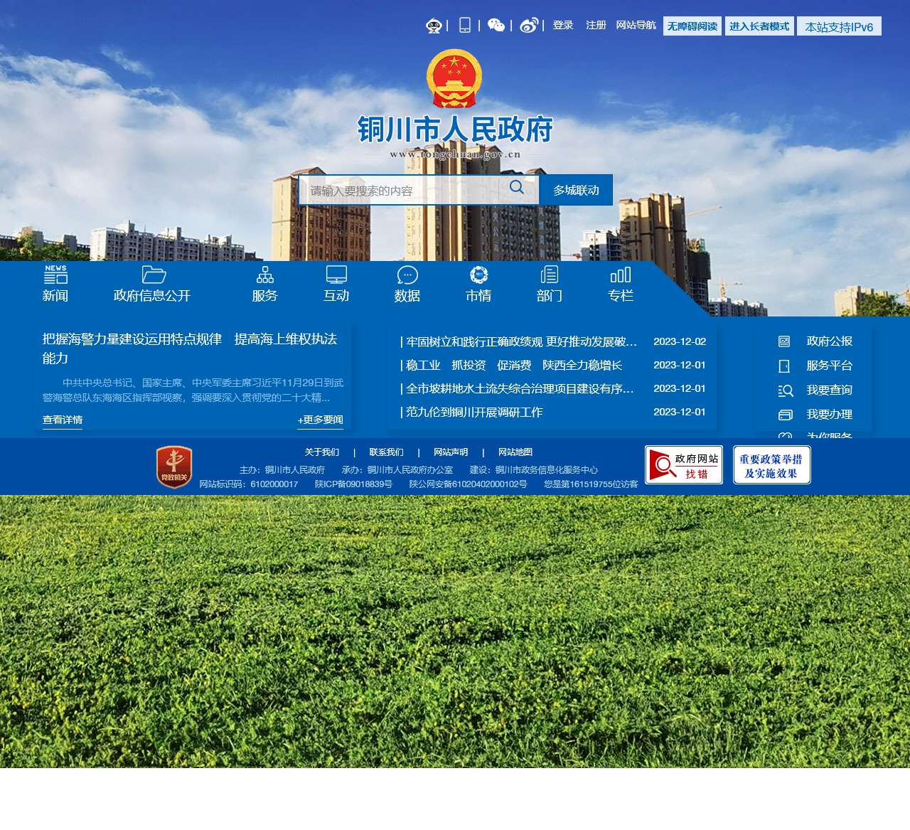 欢迎访问铜川市人民政府网站,这里是获取最新政府信息和便民服务的专业平台。通过精心设计的网页布局和丰富的内容,我们努力为您提供全面、及时的政府动态和服务信息。
