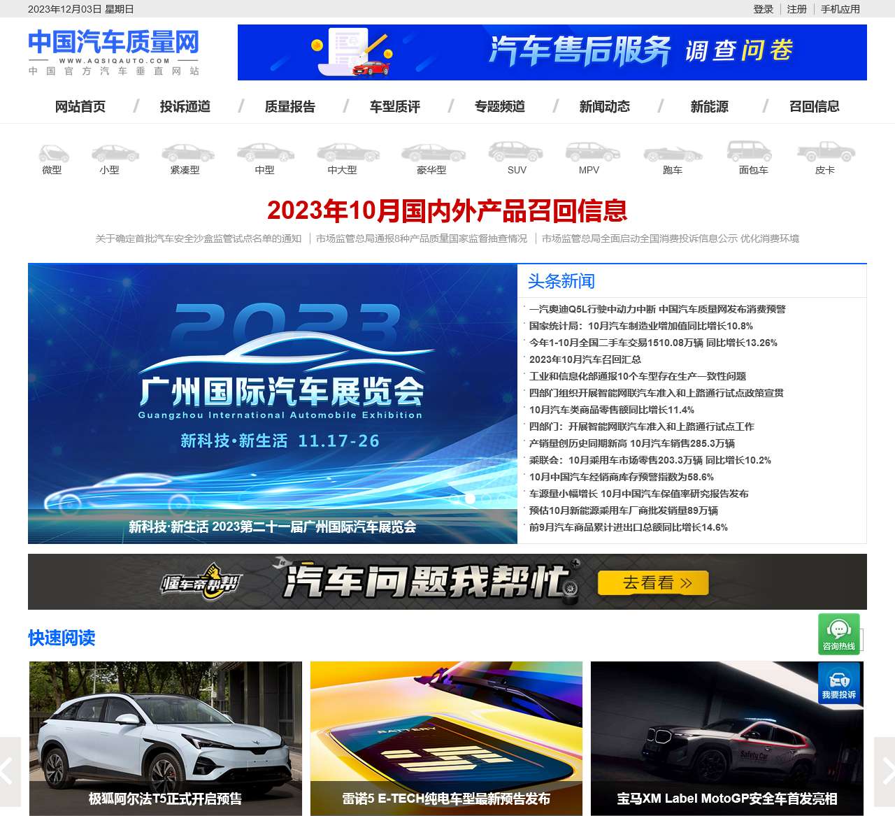 欢迎访问中国汽车质量网,您的权益保障和消费投诉官方服务平台。我们致力于为广大车主提供权威、可靠的汽车质量信息,协助您了解车辆质量、解决投诉问题。以下是我们网站首页的主要内容和服务: