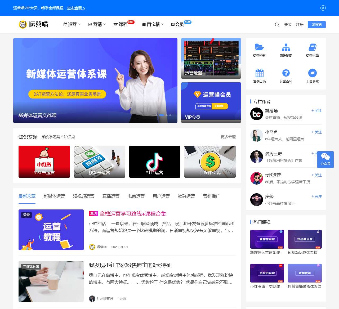 欢迎来到运营喵丨互联网运营人学习平台,您的专业互联网运营学习平台。我们致力于为广大运营人提供全面的学习资源,涵盖新媒体运营、短视频运营、直播运营、活动运营、用户运营、社群运营、电商运营、营销等多个领域。通过精心整理的课程、资料下载、思维导图、运营书单等丰富内容,助您在互联网运营领域不断成长。