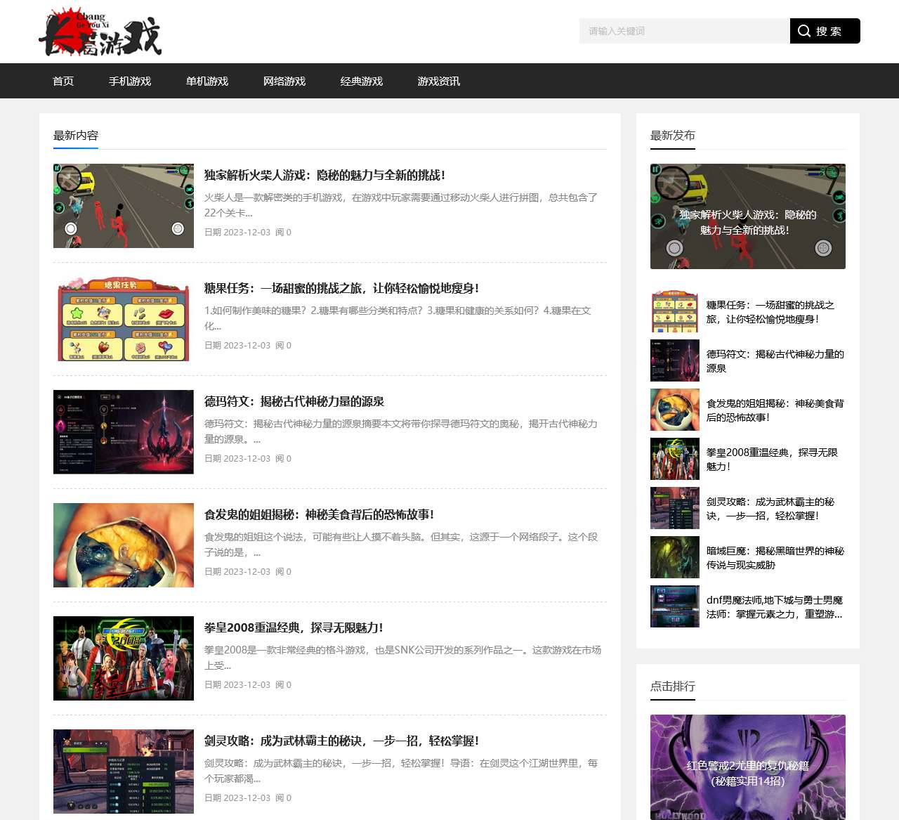 欢迎来到长葛游戏网,您的游戏资讯和攻略的综合平台。我们为您提供最全面、最新的手游、单机游戏、网络游戏以及经典游戏的相关信息,助您轻松愉悦地掌握游戏的精髓。以下是我们网站首页的主要分类,让您更便捷地找到您感兴趣的内容: