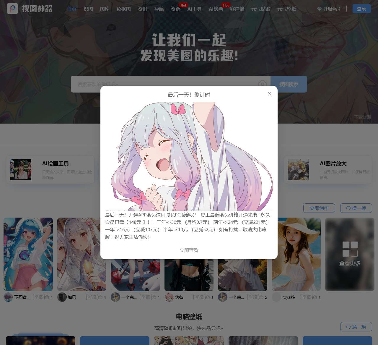 搜图神器的用户端为您提供更便捷的服务,可以随时随地搜索和下载您需要的图片。同时,开通会员还能享受更多专属服务。