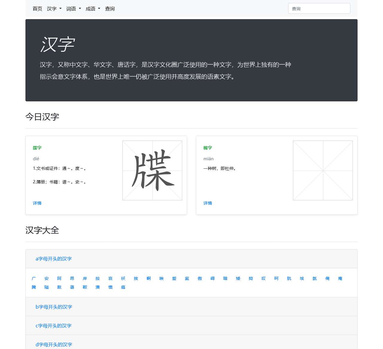 书铭网汉字-汉字大全,是一个提供详细、全面的汉字信息的网站。无论您是学习汉字拼音、汉字部首、汉字笔画、汉字五行还是汉字五笔,书铭网都能满足您的需求。