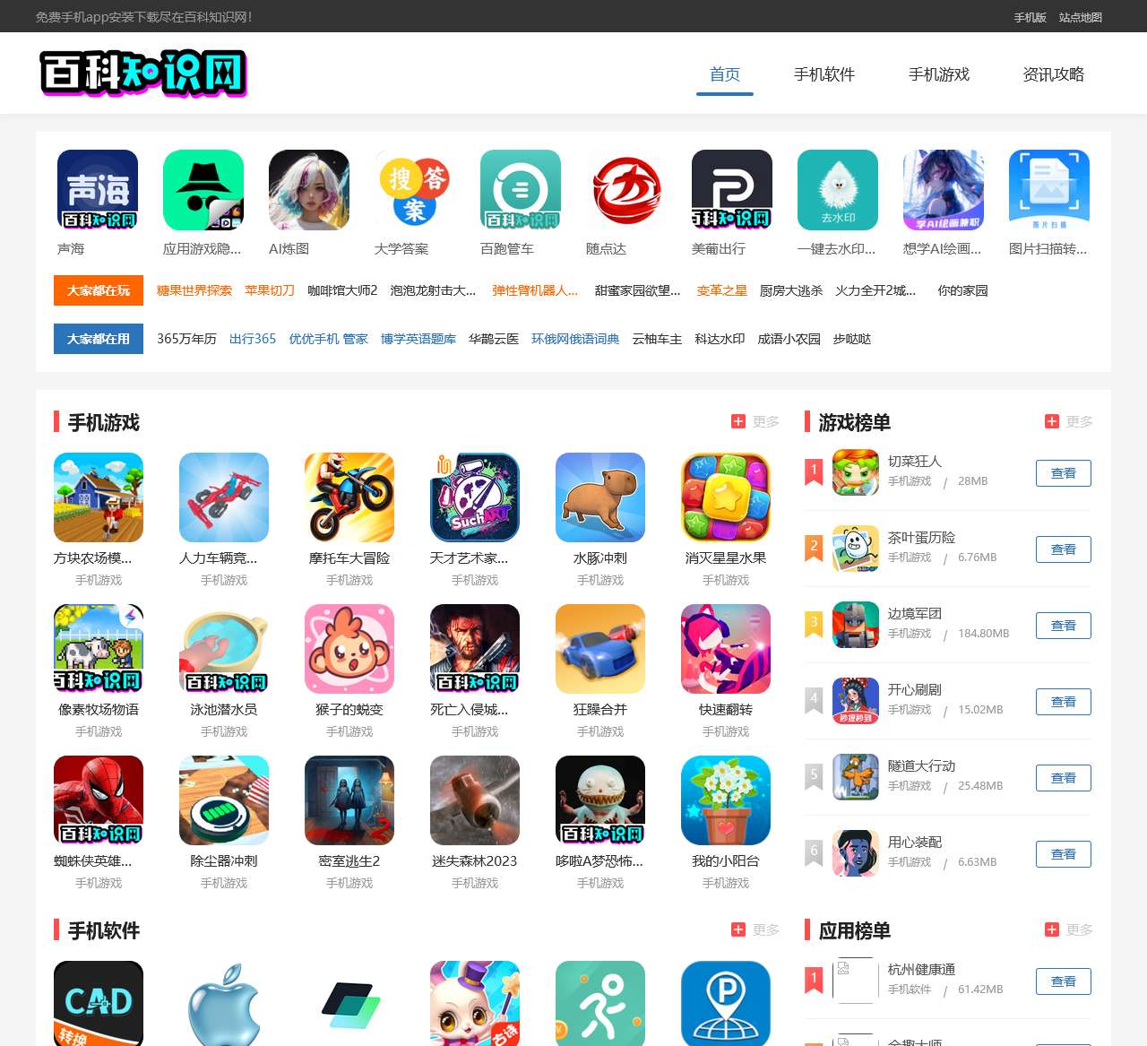 网站介绍:百科知识网 – 最新手机App应用与游戏免费下载平台