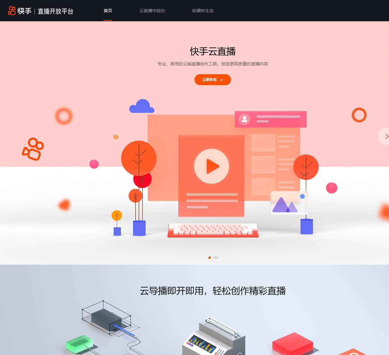 快手云直播是服务于快手主播的一款云端直播工具,提供了推流直播、拉流直播、云导播、多平台分发和直播剪辑等能力,支持OBS、无人机、运动相机、全景相机、编码器等软硬件开播,可实现4K超高清和VR全景直播,并能够自动识别精彩时刻,帮助创作者生产出场景更丰富、玩法更多样、内容更多元的作品。