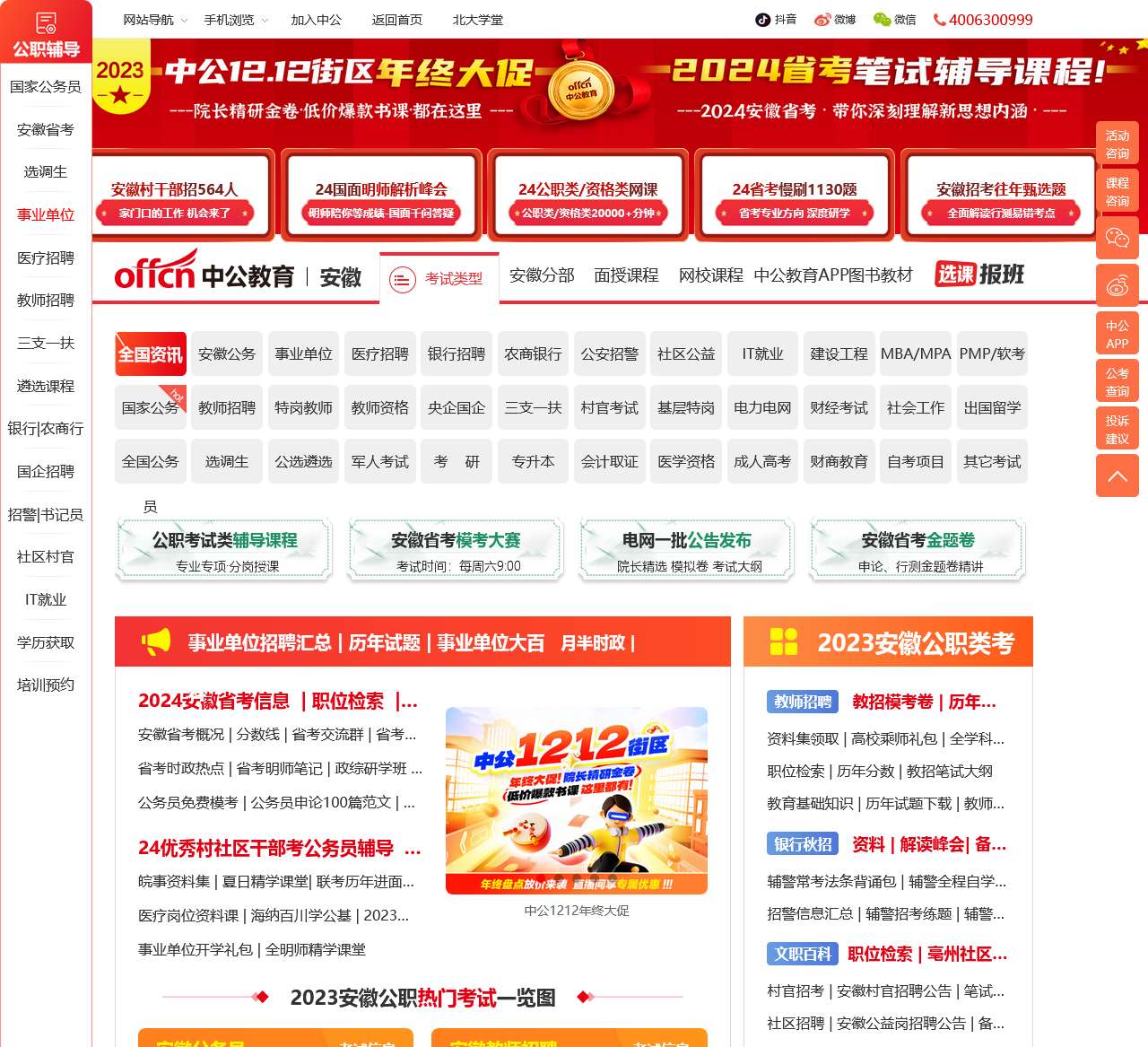 【安徽中公教育网】提供安徽公务员考试、安徽事业单位招聘、安徽教师招聘教师资格、银行、选调生等考试公告信息、报名时间、职位表、成绩、试题、笔试面试培训班,安徽中公-公职类考试培训机构!