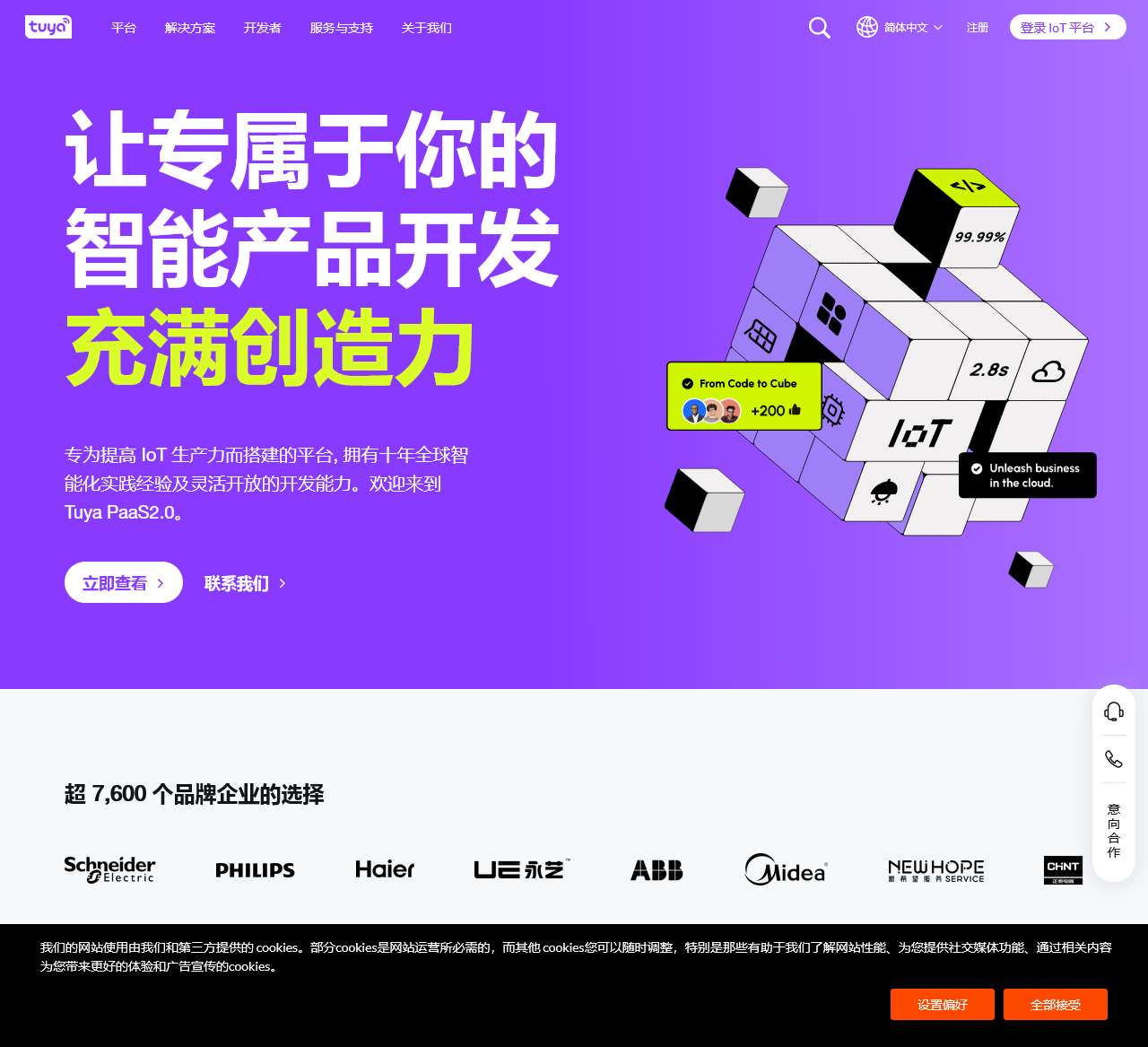 | 应用开发 | App SDK,设备面板开发,智能小程序,OEM App |