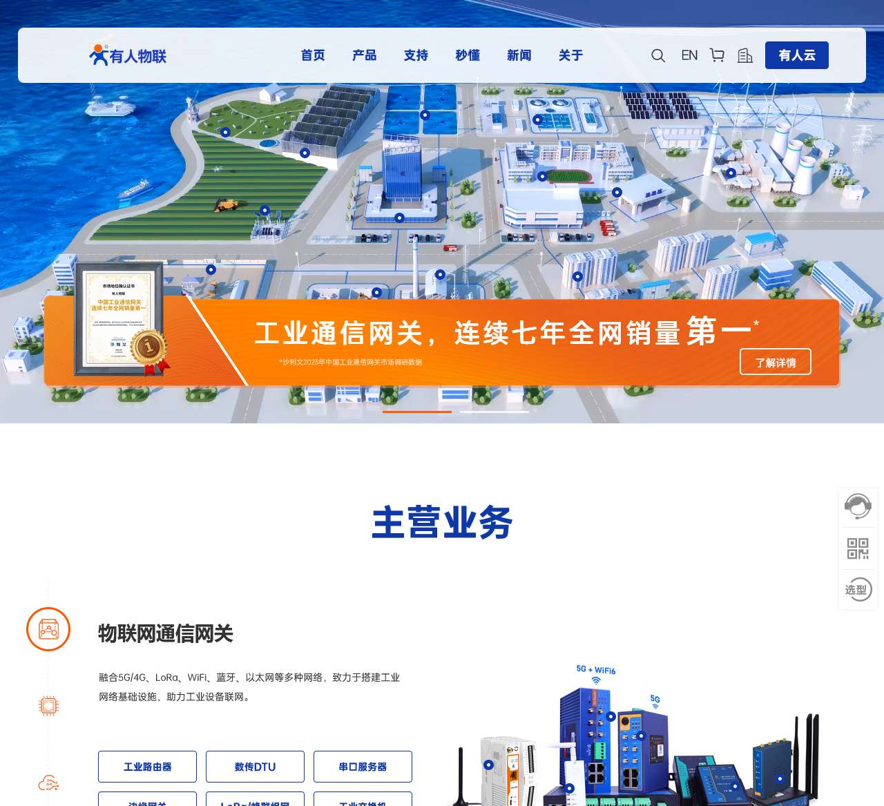 有人物联网定位为可信赖的智慧工业物联网伙伴。主营5G/4G工业级无线路由器、串口服务器、数传终端DTU、边缘计算网关、Cat-1模块、LoRa网关/模块、4G DTU、4G模块、蓝牙模块、串口WIFI模块、WIFI无线串口服务器、串口转以太网模块、超级网口以及云平台传输,实现软硬一体化联网解决方案。