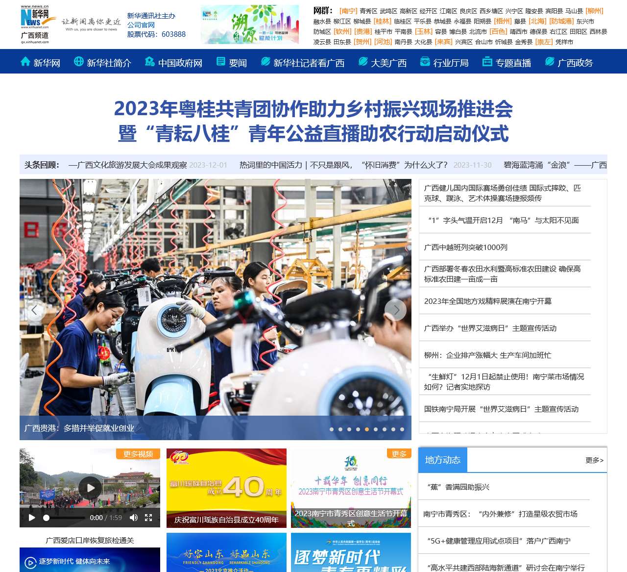 欢迎访问新华网广西频道,我们为您提供最新、最全面的广西资讯。作为权威媒体,我们关注南宁及周边地区的各类新闻,涵盖青秀区、武鸣区、高新区、经开区、江南区、良庆区、西乡塘区、兴宁区、隆安县、宾阳县、马山县等地。同时,横向覆盖柳州、梧州、玉林、贺州、河池等地,为您提供丰富的地方信息。