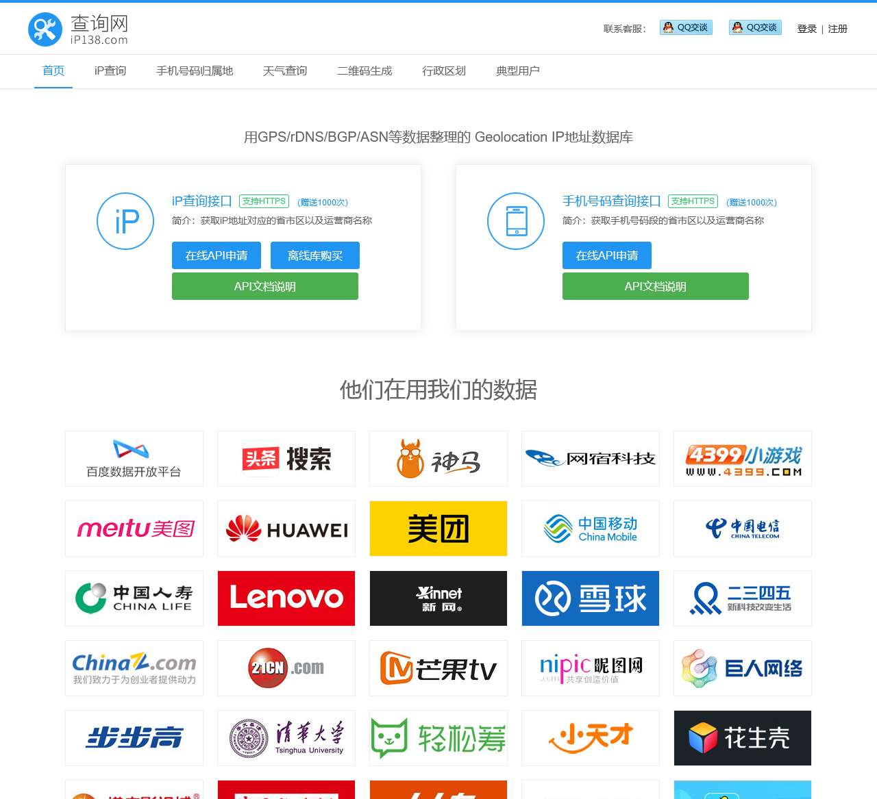 iP138查询网,为开发者提供最全面的API服务,汇集了国内外应用开发所需要的IP地址查询、手机号码归属地查询、天气预报查询、二维码等多个范畴的服务,旨在向开发者提供最全面,最便捷的API搜索服务。