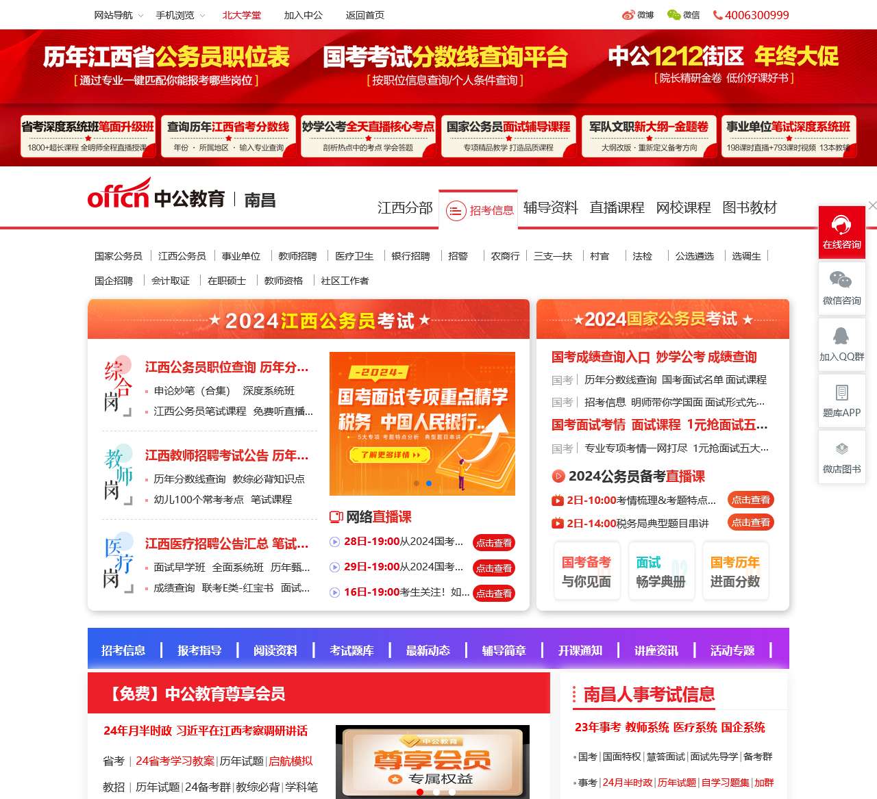 【南昌中公教育-公务员培训机构】专注江西(南昌)招聘考试网_提供2014江西(南昌)公务员_国家公务员_事业编_教师_银行_考研_会计等公告_时间_职位表_报名入口_成绩查询_模拟试题_资料及笔试面试辅导。联系方式_0791-86823131。