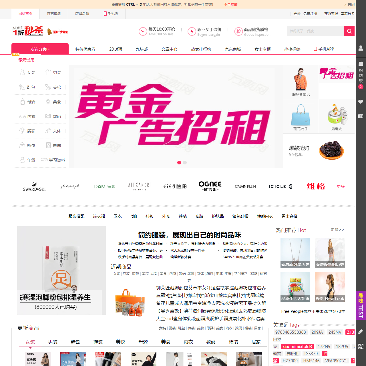 在天天特价网,我们为您提供丰富的商品分类,满足您各种购物需求:
