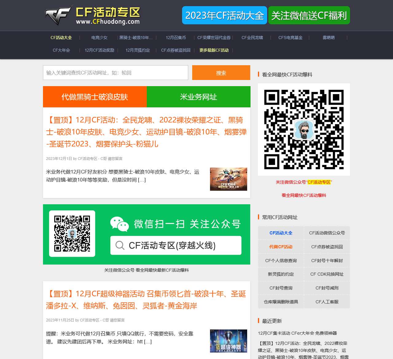 CF活动专区每天汇总最新CF活动网址,包括最新CF抽奖活动网址爆料,方便穿越火线玩家领取CF礼包。查看2023 年12 月CF活动大全,认准www.CFhuodong.com !