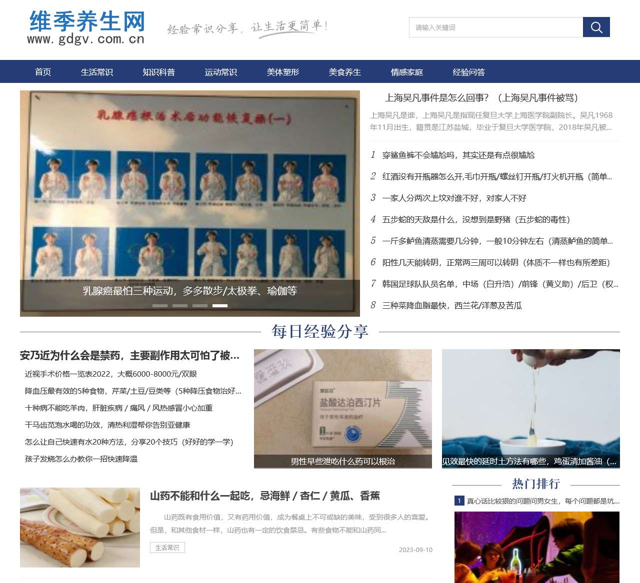 欢迎来到维季养生网,您的健康生活专家。我们致力于为您提供全面的健康养生知识,助您迈向更健康、更美好的生活。通过生活常识、知识科普、运动常识、美体塑形、美食养生、情感家庭、经验问答等多个频道,我们为您呈现丰富多彩的健康资讯,让您的生活充满活力。