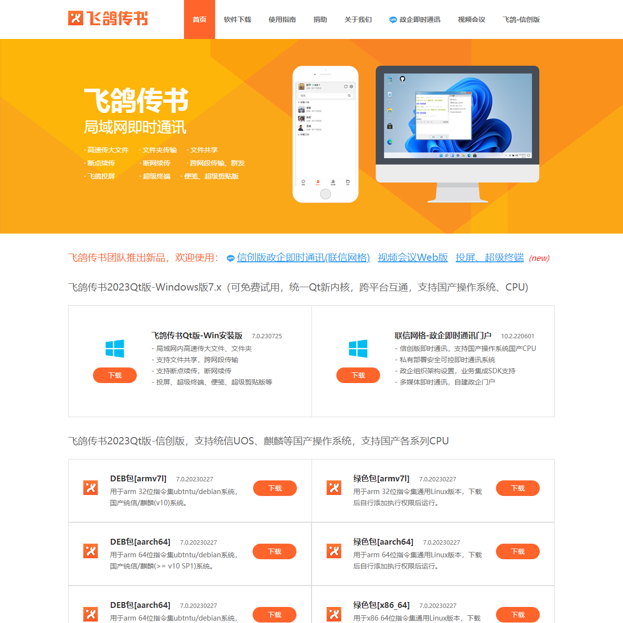 - 飞鸽-信创版:专为企业打造的即时通讯解决方案,满足企业通讯需求。