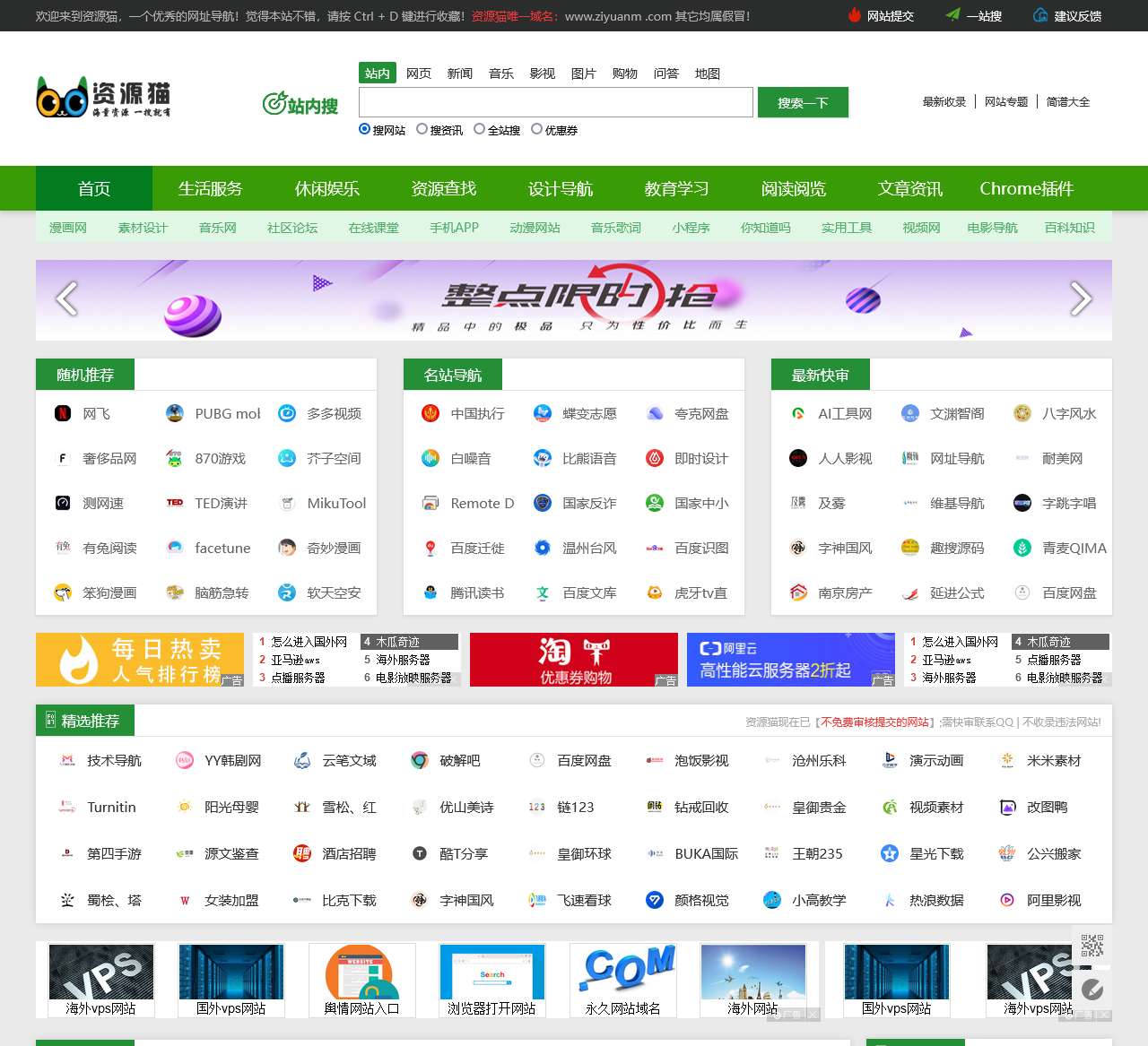 资源猫分类目录免费为您整合全网资源,其中分类目录有休闲娱乐,音乐,阅读,软件应用以及影视等网站导航,只要在资源猫上面进行资源搜索,简单一搜,想要的资源直接出现。