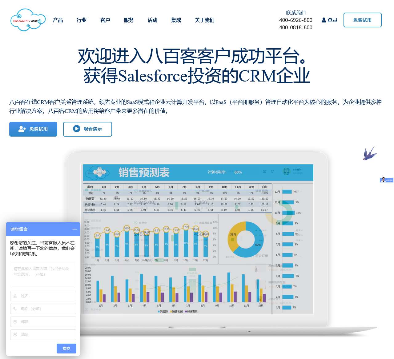 | 手机APP | 为何选择八百客? | 营销服一体化行业 | |
