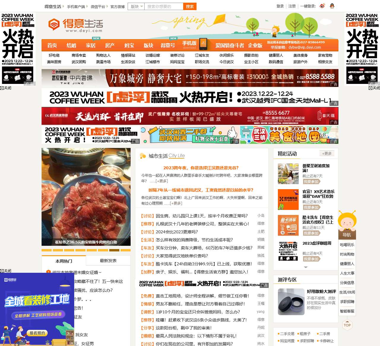 得意生活(deyi.com)是武汉最大的本地生活交流与服务平台,提供最新最全的武汉打折、武汉团购、购物、房产、家装、母婴、婚纱摄影、女性写真、武汉交友、求职招聘、美食小吃、娱乐时尚、女性生活 ,得意生活-武汉生活消费社区