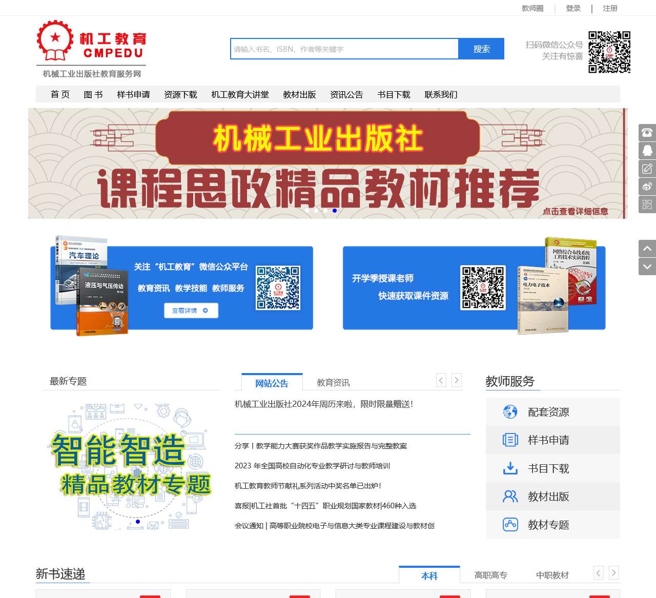 机械工业出版社官方教育服务网站,为用户提供教材查询、课件下载、样书申请 、教师培训、选题出版等服务。客服微信:1156857683,客服电话:010-88379833 。
