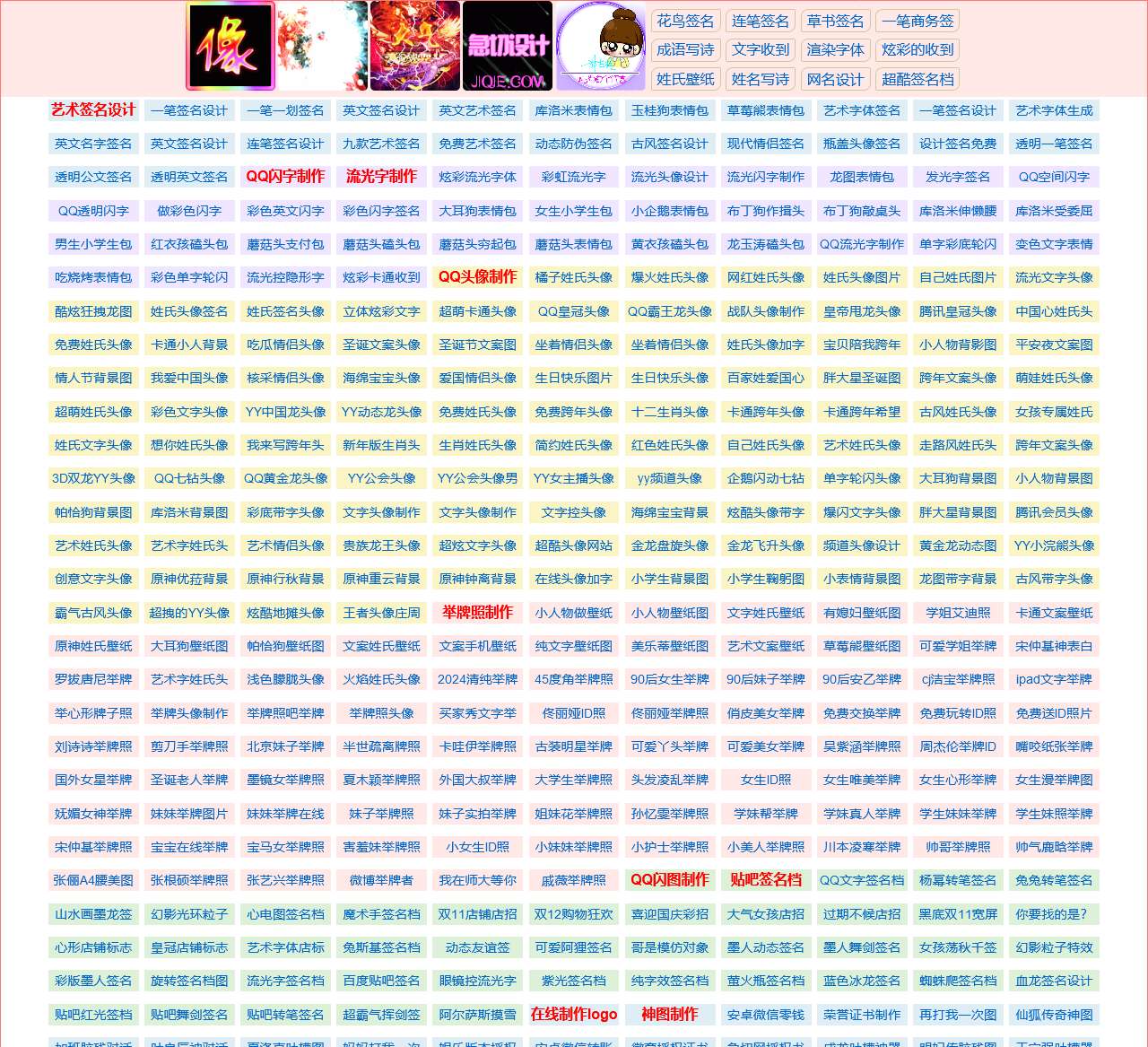 | 字体设计 | 艺术字体签名, 艺术字体生成, 英文名字签名, 英文签名设计, 一笔签名设计, 彩虹流光字, 流光头像设计, 流光闪字制作, QQ流光字制作, 单字彩底轮闪, 变色文字表情, 彩色单字轮闪, 炫彩卡通收到, 大耳狗表情包, 女生小学生包, 小企鹅表情包, 布丁狗作揖头, 布丁狗敲桌头, 库洛米伸懒腰, 库洛米受委屈, 男生小学生包, 红衣孩磕头包, 蘑菇头支付包, 蘑菇头磕头包, 蘑菇头穷起包, 蘑菇头表情包, 黄衣孩磕头包, 龙玉涛磕头包, 彩色英文闪字, 彩色闪字签名 |