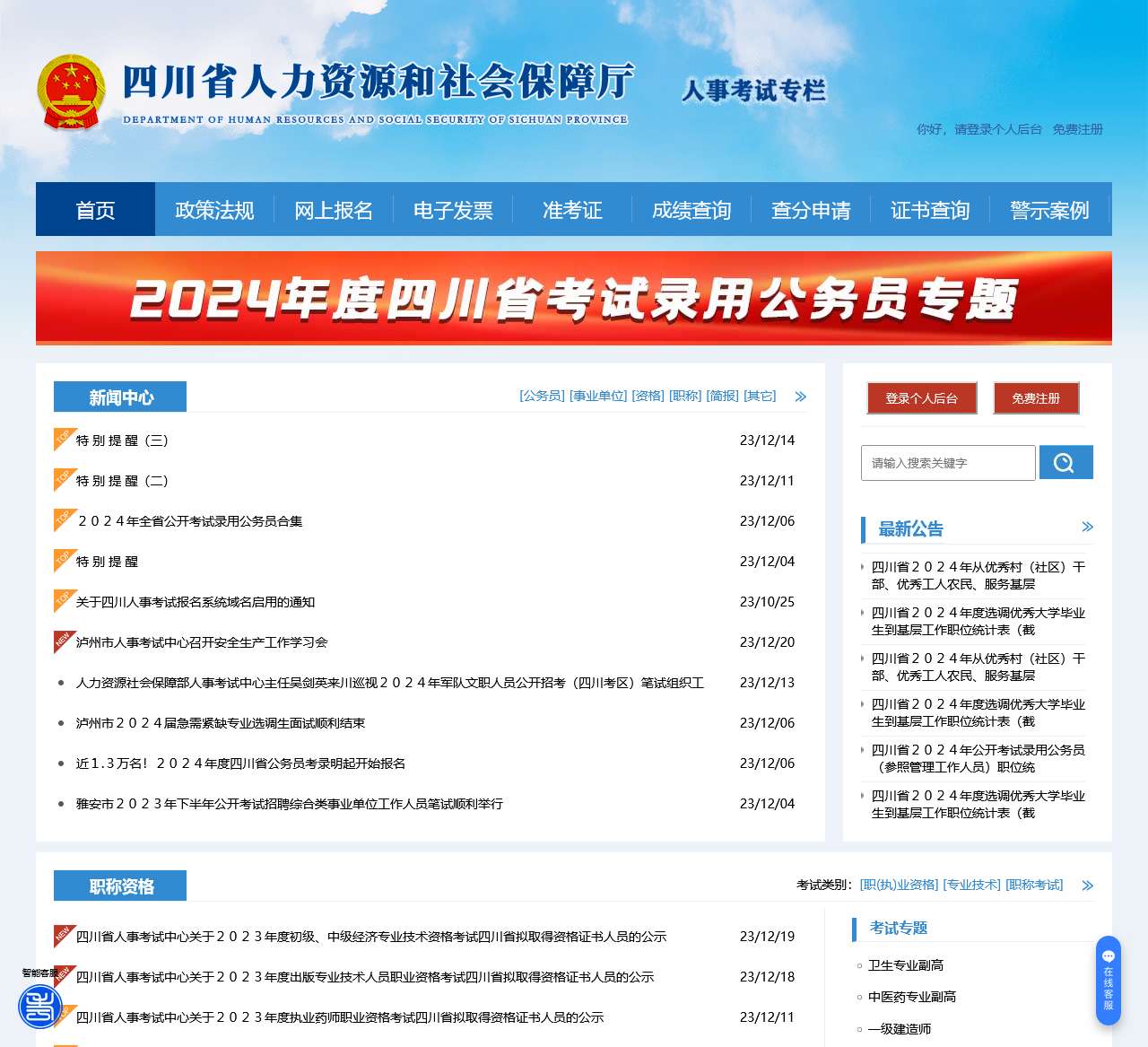 关于首页 – 四川省人力资源和社会保障厅人事考试专栏特别声明
