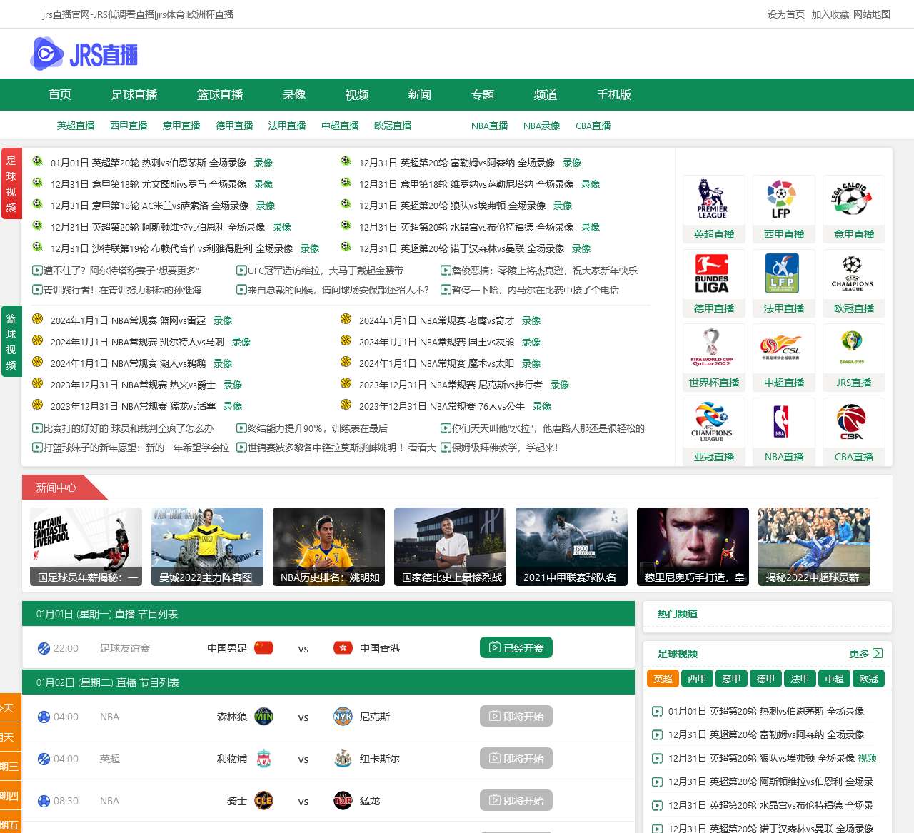 欢迎来到JRS官网,您的足球和篮球直播专家!我们提供全面的赛事直播、录像、视频以及最新体育新闻。JRS官网致力于为广大球迷提供最精彩的赛事内容,包括英超、西甲、意甲、德甲、法甲、中超、欧洲杯等热门联赛和赛事。